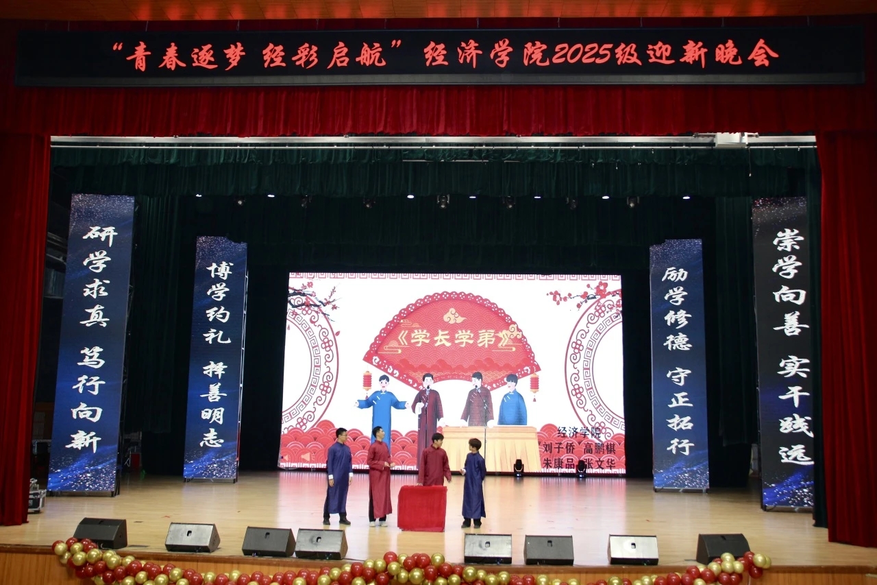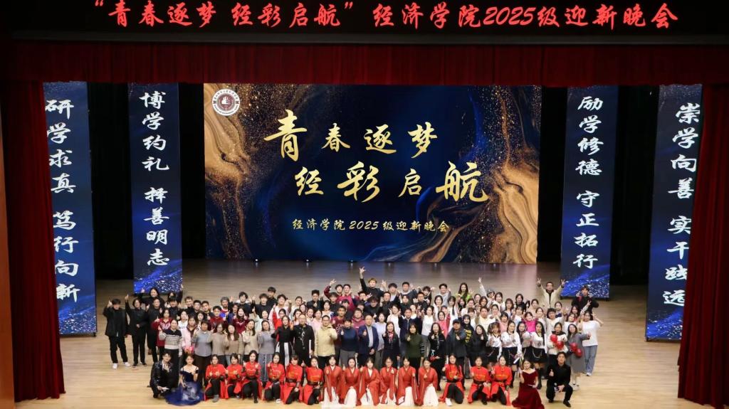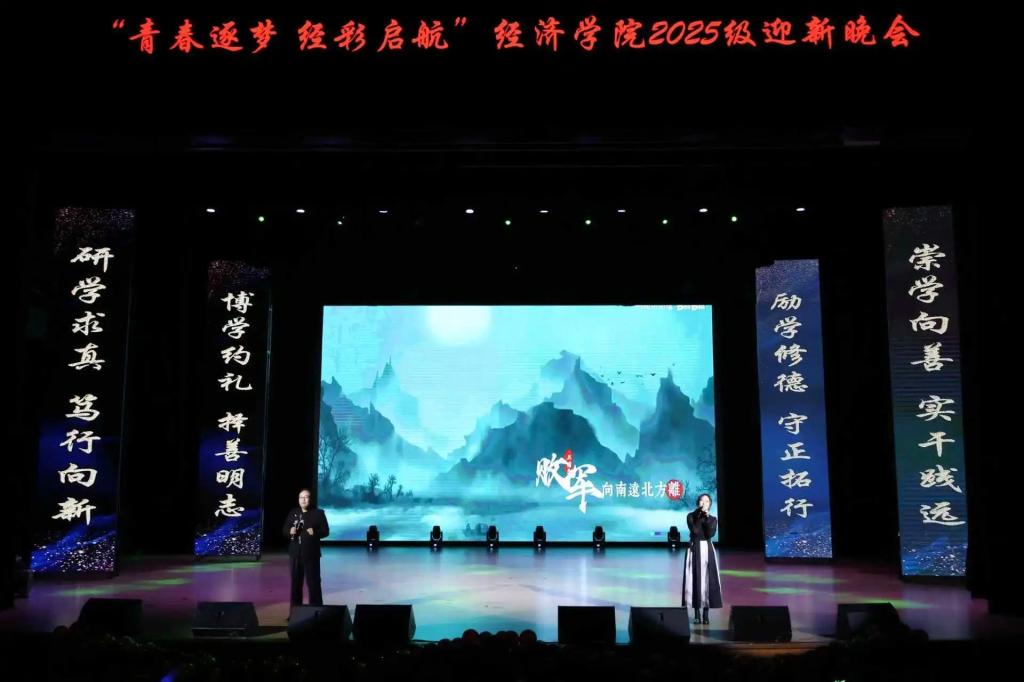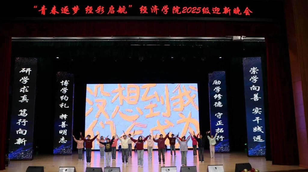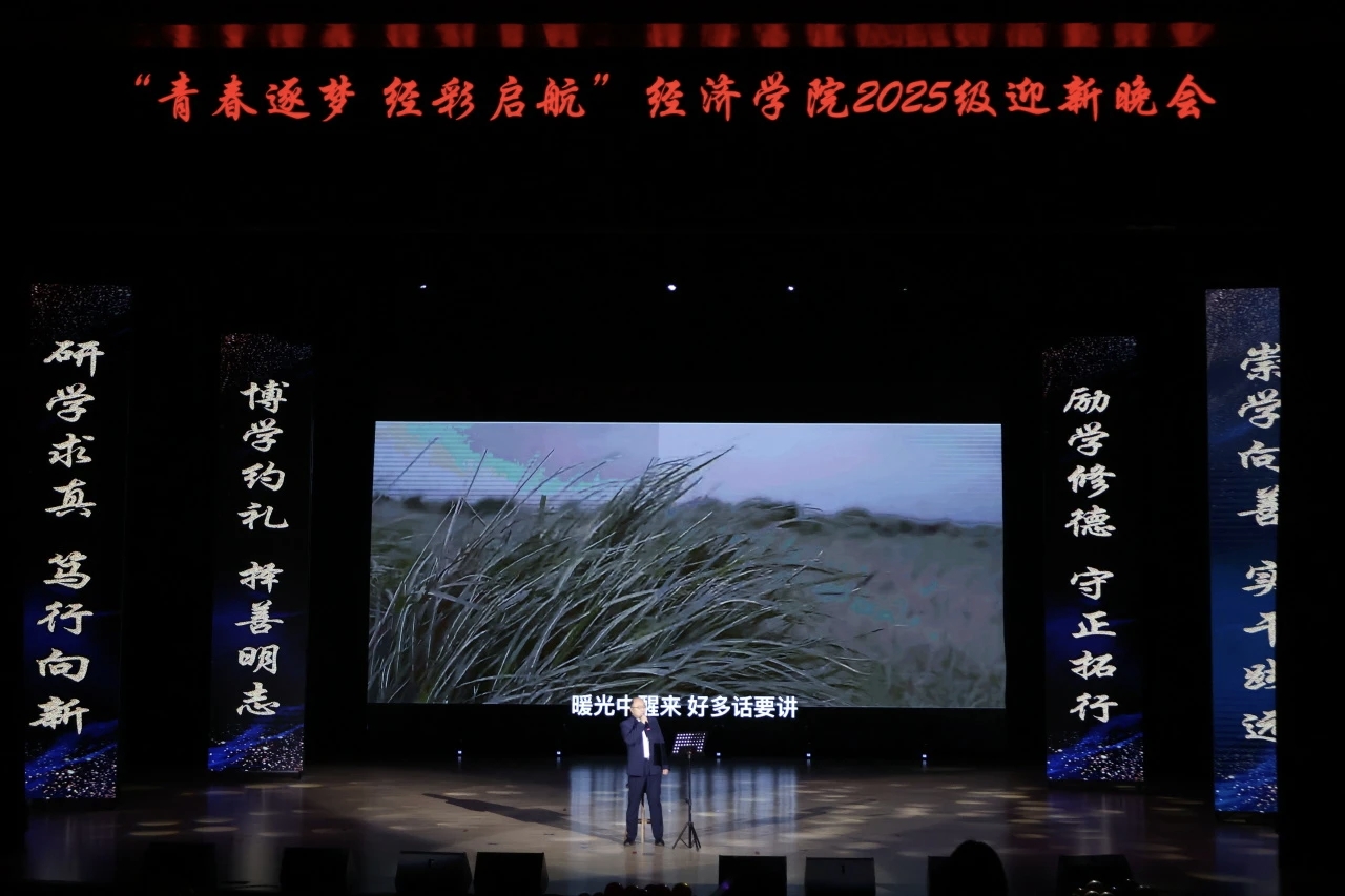 金风染遍松江岸,丹桂香漫吉财园。当白露轻吻银杏、暮色漫过钟楼,青春的序章已随经济学子的奔赴而铺展。为欢迎2025级新同学入学,丰富师生文化生活,充实学院文化氛围,MK·体育(中国)官方网站 于11月19日下午15:30在多功能学术中心举办“青春逐梦,经彩启航”2025级迎新晚会,莅临本次大会的嘉宾有MK·体育(中国)官方网站 党委书记竭岸扬、院长张洪梅、党委副书记李萍、副院长韩艳红、MK·体育(中国)官方网站 全体师生以及各兄弟学院学生代表。