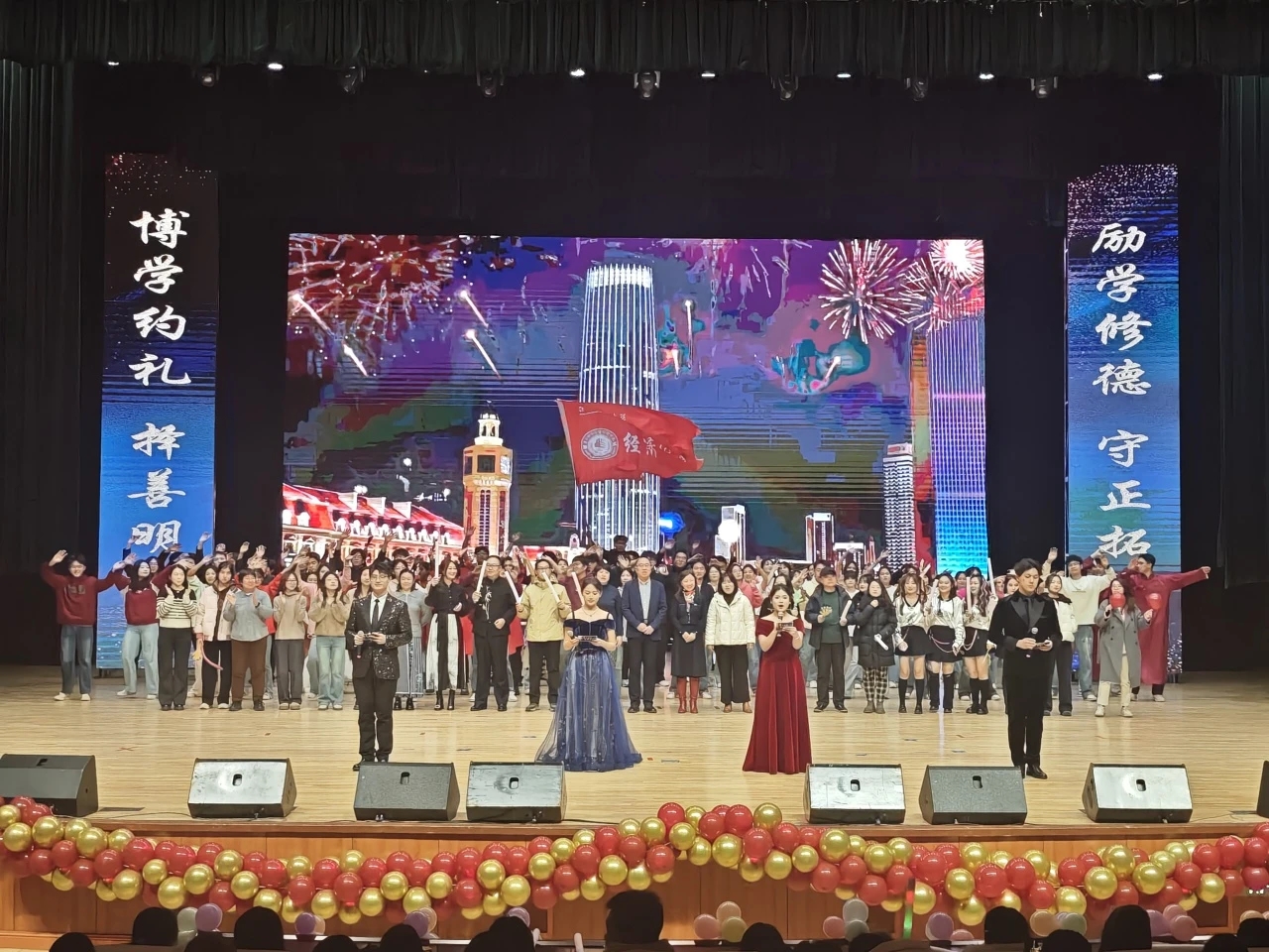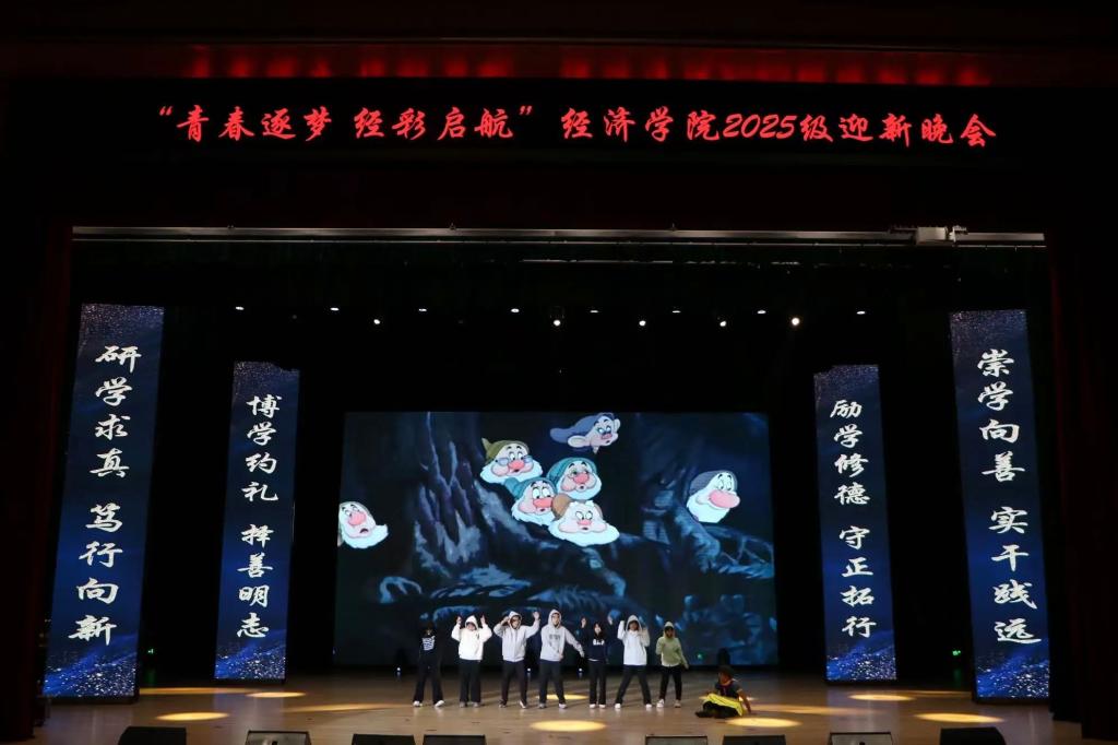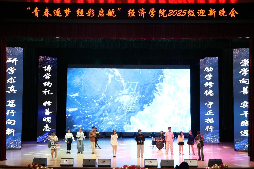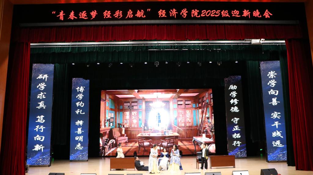 金风染遍松江岸,丹桂香漫吉财园。当白露轻吻银杏、暮色漫过钟楼,青春的序章已随经济学子的奔赴而铺展。为欢迎2025级新同学入学,丰富师生文化生活,充实学院文化氛围,MK·体育(中国)官方网站 于11月19日下午15:30在多功能学术中心举办“青春逐梦,经彩启航”2025级迎新晚会,莅临本次大会的嘉宾有MK·体育(中国)官方网站 党委书记竭岸扬、院长张洪梅、党委副书记李萍、副院长韩艳红、MK·体育(中国)官方网站 全体师生以及各兄弟学院学生代表。