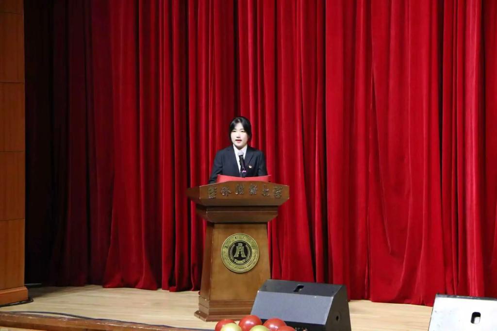 2025级新生代表张函硕代表全体新生向师长们与亲友们致以诚挚致谢,并向新同窗发出青春邀约。发言中,她回望求学路上的坚守与情谊,分享了入学后从迷茫到融入的成长感悟,并与全体新同学共勉:以勤勉深耕学业,以包容拥抱成长,以朝气践行院训使命,在吉财绽放青春光彩。